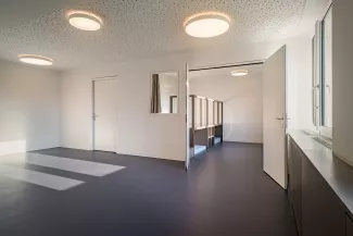 L'école du Lavapesson, bâtiment érigé en 1906, est transformée en crèche et en école maternelle après sa fermeture en 2017. L'intervention débute par une analyse approfondie de l'état du bâtiment et des mises aux normes nécessaires. Les nouvelles affectations sont réparties horizontalement : la maternelle au rez-de-chaussée inférieur avec accès depuis la place de jeux, la crèche au rez-de-chaussée et au premier étage avec entrée principale.