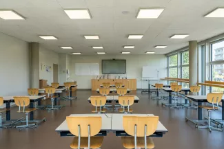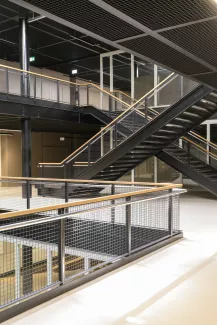 Construit en 1971 pour 550 élèves, le Cycle d'orientation de la Glâne a fait l'objet d'une rénovation complète face à la croissance démographique de la région. Le bâtiment, protégé au titre des biens culturels pour sa façade et sa structure, repose sur le système CROCS — une grille modulaire développée à Lausanne dans les années 1960 pour répondre à des besoins scolaires urgents. Cette protection a orienté l'ensemble des choix techniques : une fenêtre à guillotine triple vitrage a notamment été développée spécifiquement pour concilier préservation de l'identité architecturale et performance énergétique. La libération des espaces liés à l'ancienne piscine, déplacée dans le centre de loisirs voisin, a permis une réorganisation complète du programme sans extension. Les travaux ont été conduits en site occupé, assurant la continuité des activités scolaires tout au long du chantier.