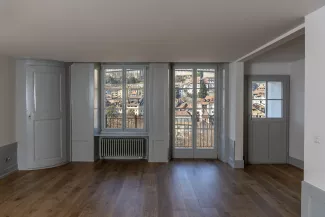 Immeuble médiéval protégé situé dans la vieille ville de Fribourg, le bâtiment faisait l’objet d’un assainissement complet après plusieurs décennies sans rénovation majeure. Le projet prévoit la création d’un nouvel appartement dans les combles, le renforcement structurel de l’édifice et la restitution de son aspect extérieur d’origine, dans le respect de sa typologie protégée. La découverte de dégradations importantes a nécessité une reprise complète des planchers, le renforcement des éléments porteurs, la reconstruction de certaines parois et la création d’un nouveau radier, ainsi que la reconstruction des balcons et le renforcement de la tourelle.